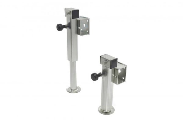 Deze steunpoot set is zeer makkelijk te monteren en toepasbaar voor verschillende merken. De afmetingen van de steunpoten zijn 60 x 415 mm. Eigenschappen; zwenkbaar, afmeting: 60 x 415 mm, slag: 240 mm, flensafstand: 85 mm en max. belasting 1350 kg (HAPERT/Henra)
